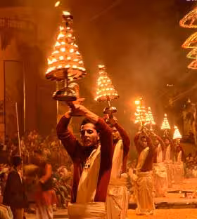 Varanasi is known for its deep spiritual aura. Pilgrims from across the world visit the cityโs famous ghats to pray, meditate, or simply absorb the soulful atmosphere. The Ganga Aarti at Dashashwamedh Ghat is a must-seeโan enchanting ritual of fire, chants, and devotion.